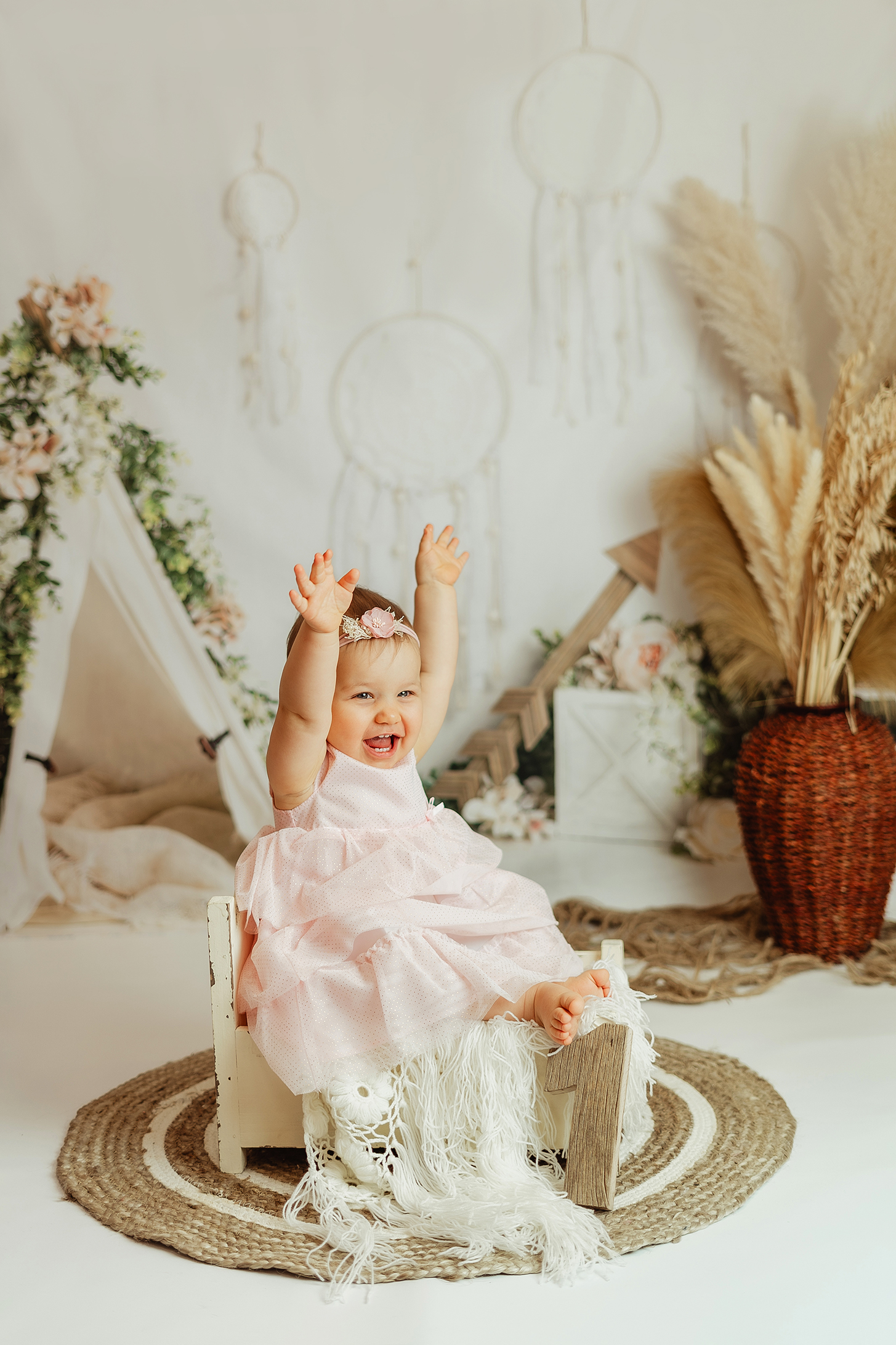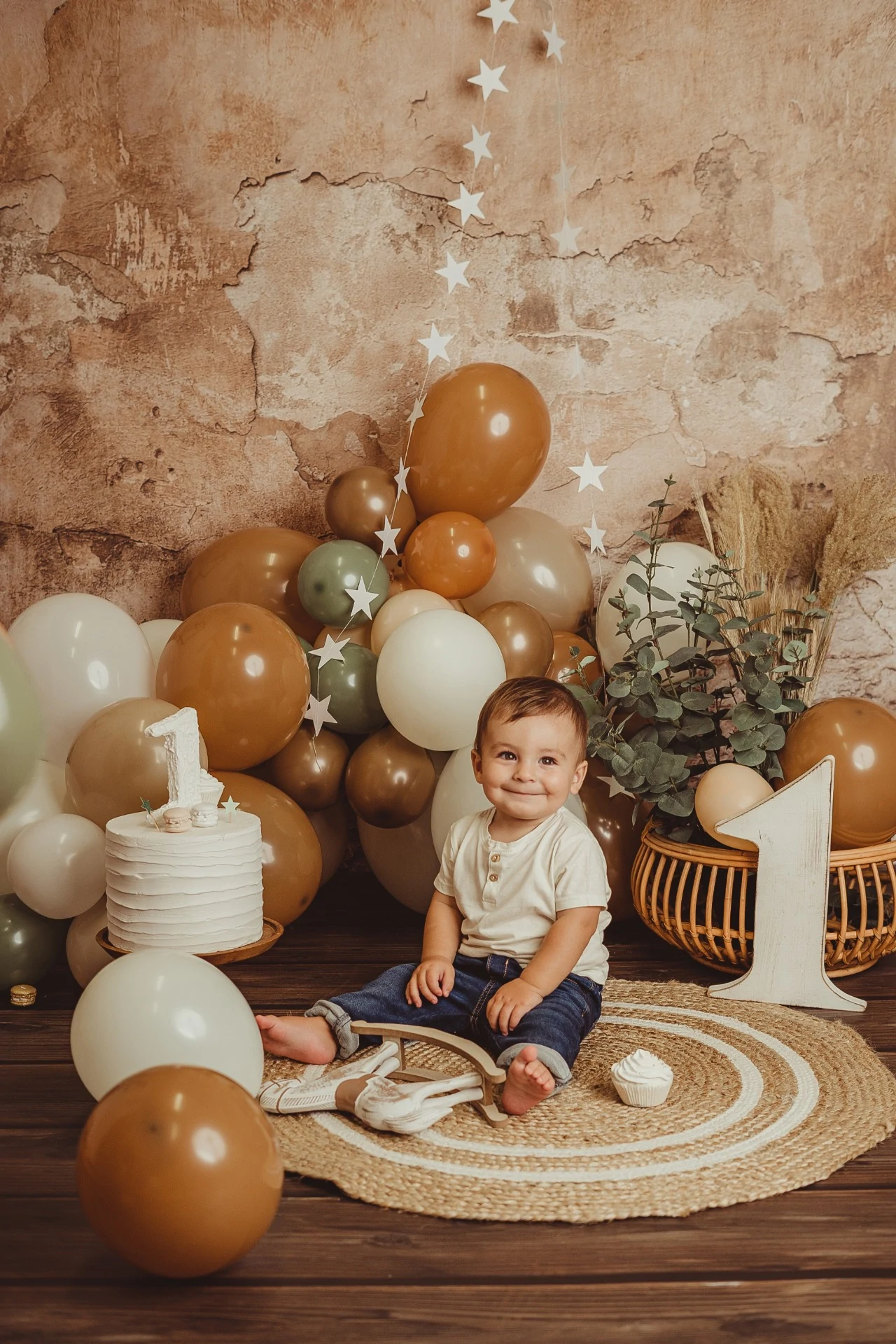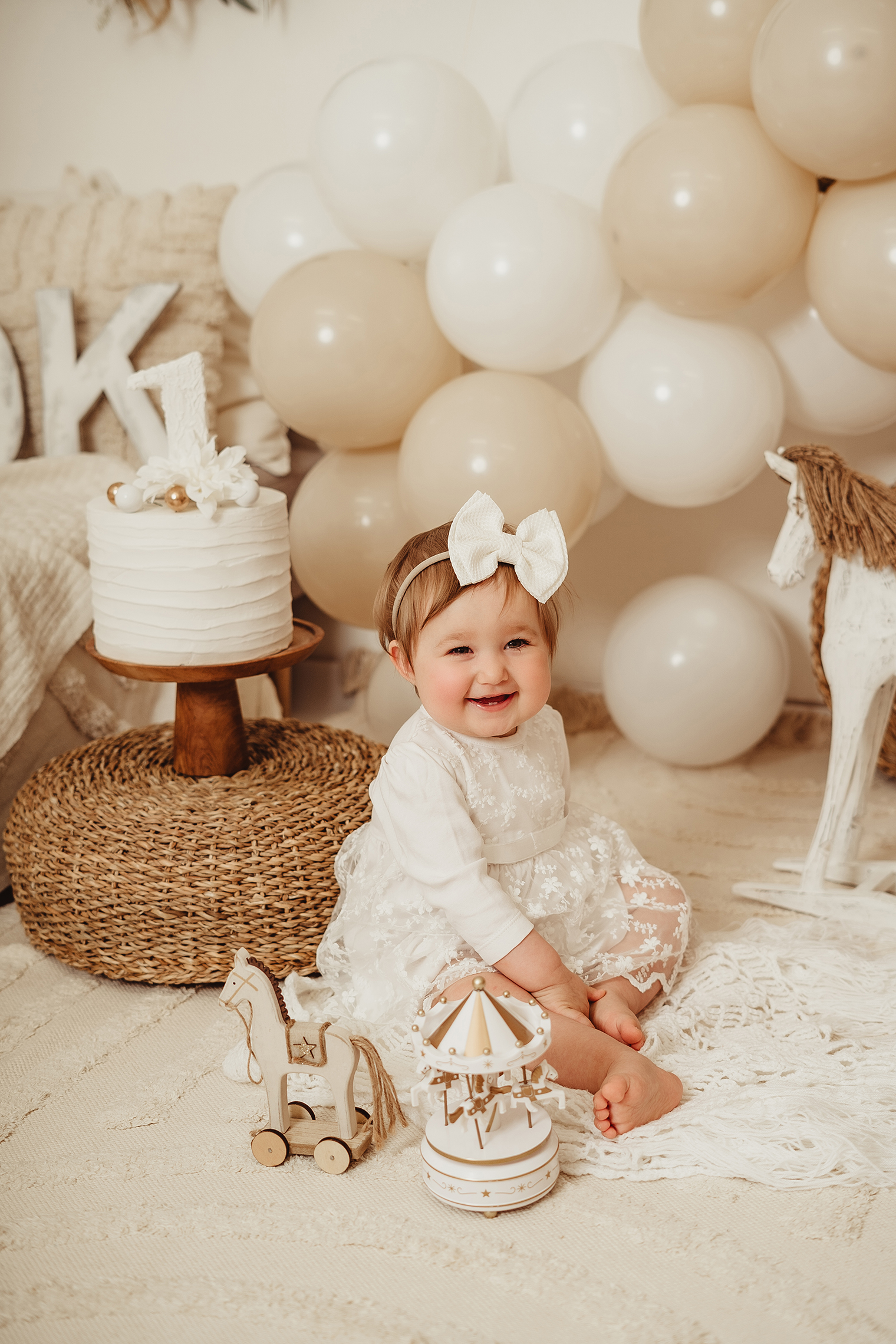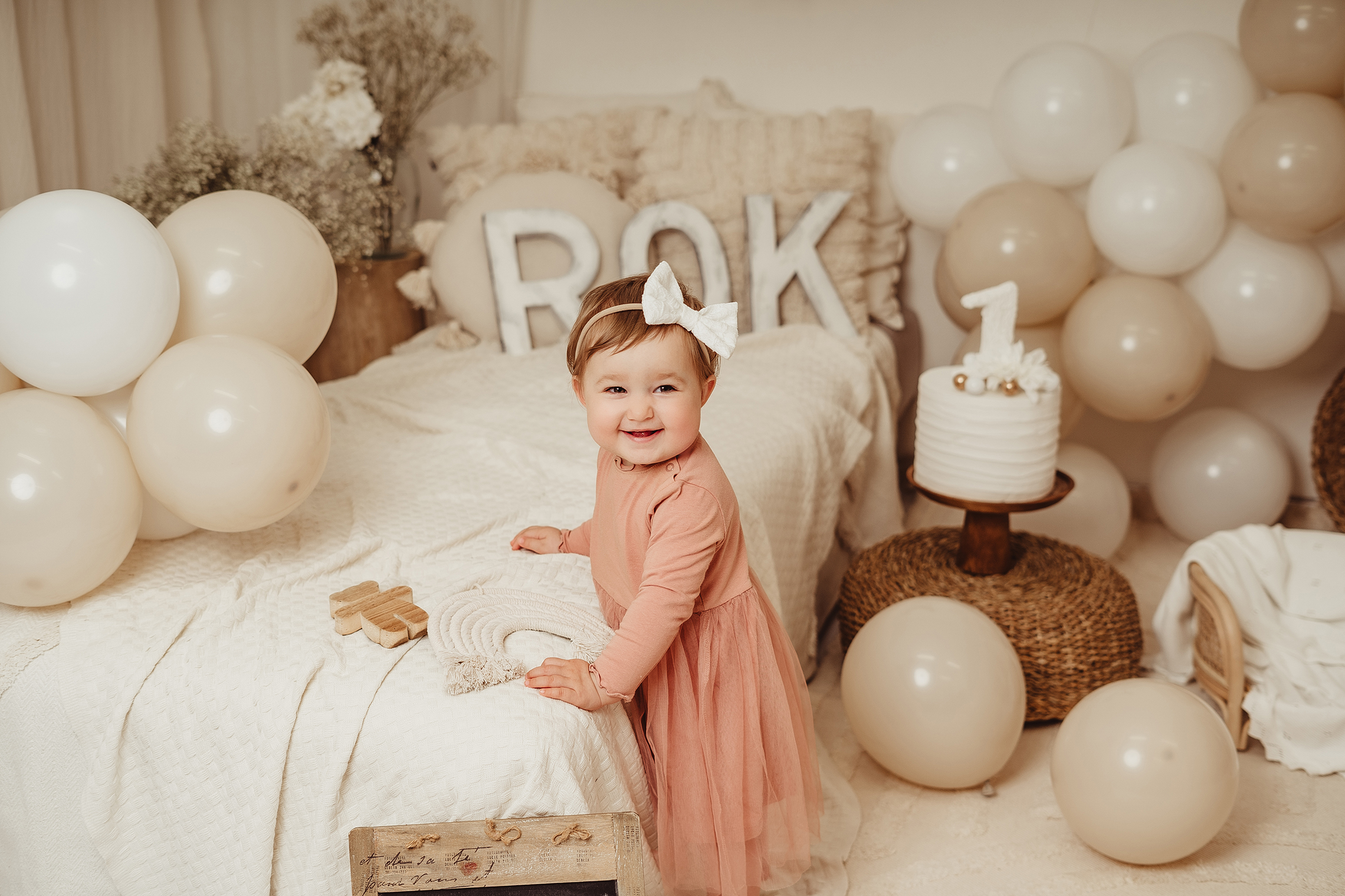 Narozeninové focení probíhá v mém příjemném fotostudiu, kde pro každého malého oslavence připravuji individuální balónkovou výzdobu. Každá scéna je laděná na míru podle vybrané barevné kombinace, aby fotografie působily harmonicky a nadčasově.